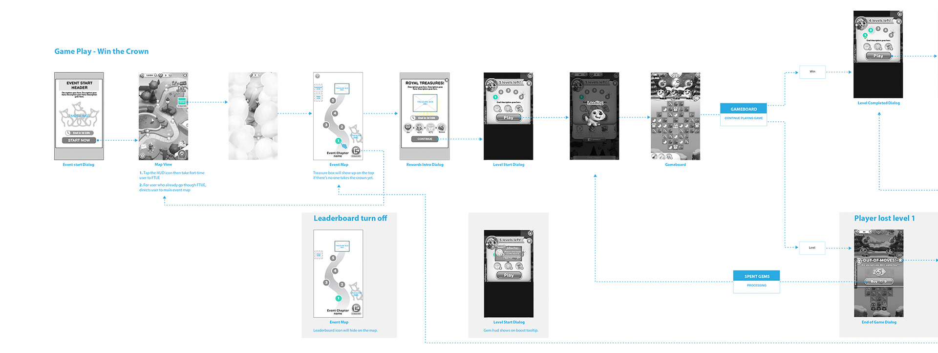 This feature introduces a new way for players to compete with other players through a limited time event that requires players to beat up to 5 levels without losing a life. My role in here is designing the entire user experience and visual design.
